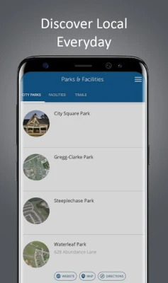 City Directory, Parks & Facilities , and Recreation / Library / Social sections allow you to have all the important contact and destination information in your city with the click of a button. Learn about your city's history, demographics and elected officials. Find facilities and points-of-interest along with information, phone numbers, maps and directions.