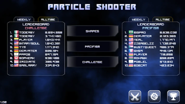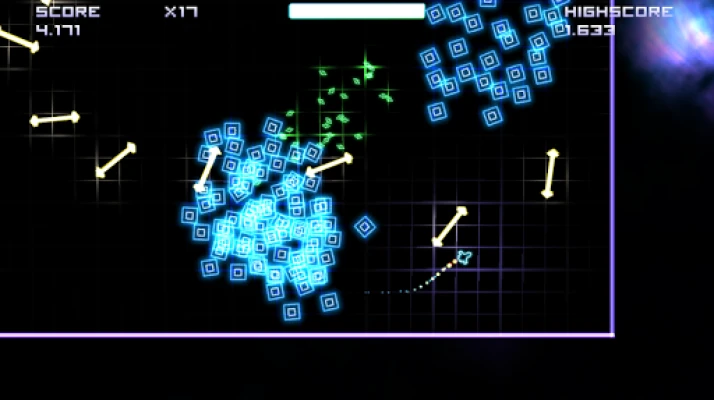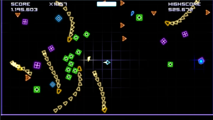 Particle Arcade Shooter is a fast-paced, awesome looking space shoot 'em up game with lots of fantastic particle effects and retro shooter feeling. Destroy your way through endless waves of colorful enemies, collect mighty power ups and become #1 on the global leaderboards.